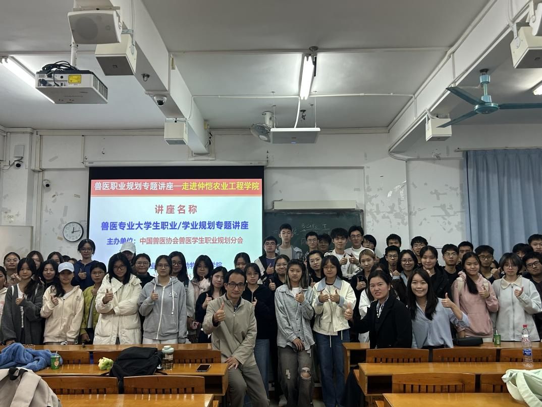 11月18日上午,动物科技学院在白云校区举办以“职业启航,规划未来”为主题的兽医专业职业规划专题讲座。本次活动特邀华南农业大学兽医学院教授、广东省畜牧兽医学会小动物医学分会会长石达友,国家执业兽医师、宠物医疗职业规划师吴颖瑶担任主讲嘉宾,2025级本科生参加讲座。