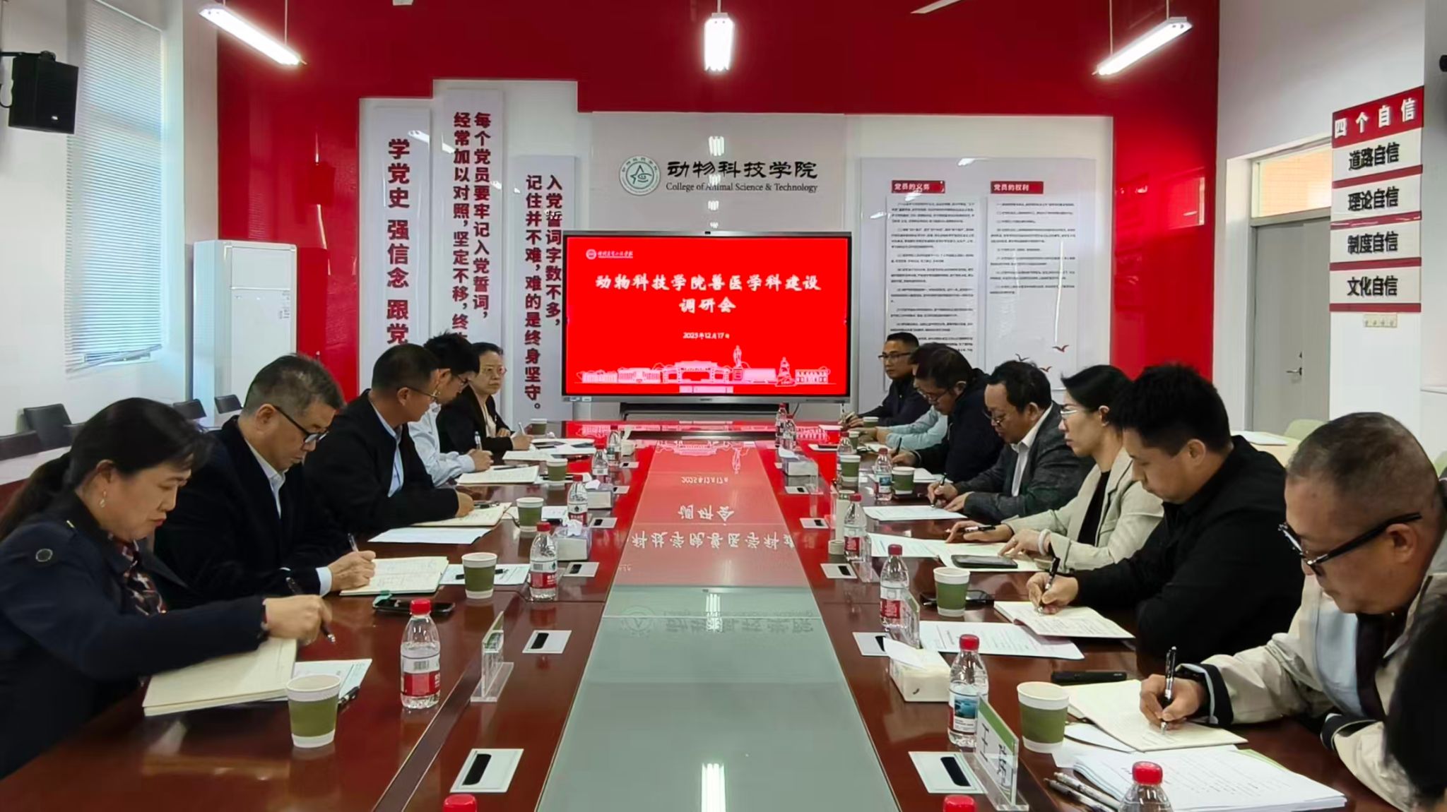 12月17日下午,学校党委副书记、校长廖明带队赴动物科技学院,就博士点申报与学科建设进展进行专题调研。党政办公室主任方凯、研究生部部长白卫东、科学技术部部长王琴、教务部部长周玲艳陪同调研。动物科技学院领导班子成员及学科骨干教师参加调研座谈会。