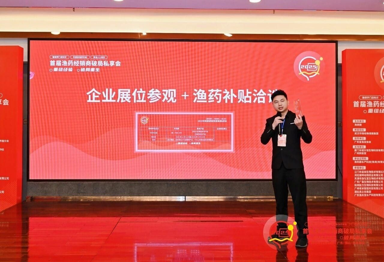 值得一提的是,本次大会由动物科技学院校友、2018届水产养殖专业毕业生、“渔商圈”平台创始人林贞武发起并组织。林贞武毕业后始终扎根专业、锐意创新,逐步创立自身品牌,并成功牵头举办此次渔药经销商高规格会议,为水产动保领域破解当前困局、探索未来路径贡献了重要力量。他的成长轨迹与行业担当,体现了学院在服务型、创新型专业技能人才培养方面的扎实成效与育人价值。