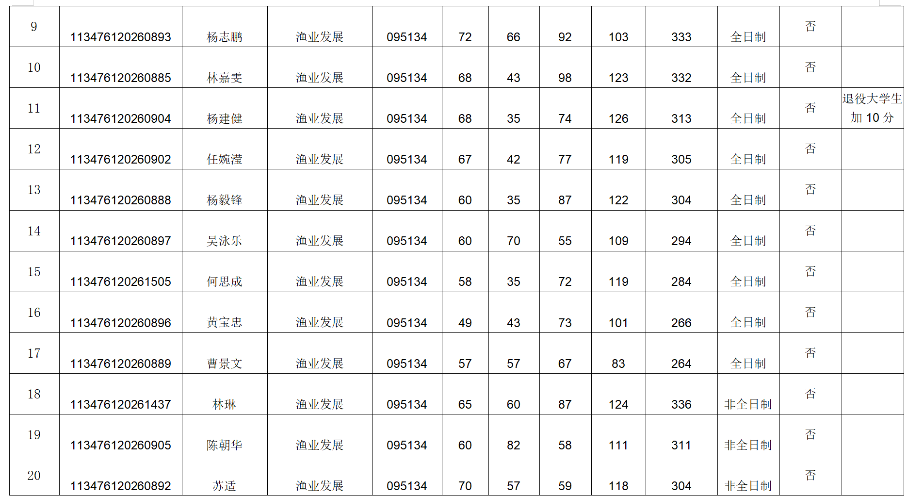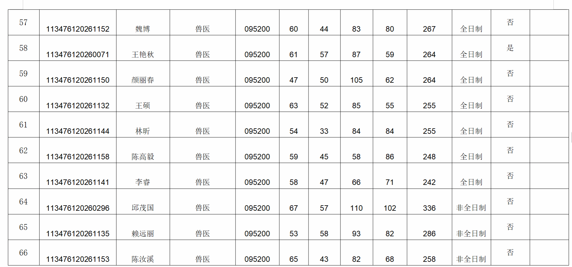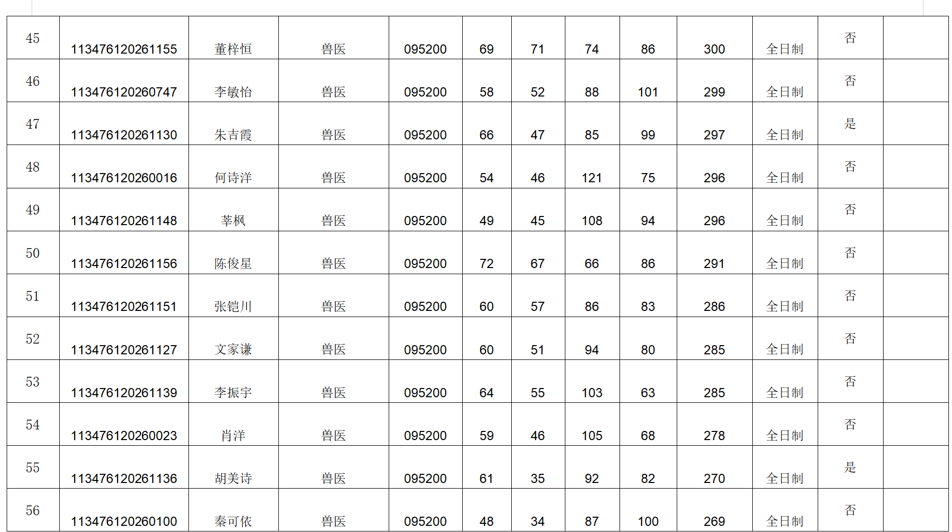 (3)招生专业按全日制与非全日制两类分开排序,考生综合成绩(保留至小数点后两位)从高到低排序确定拟录取顺序。