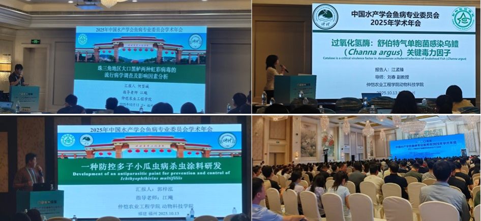 10月11~13日,中国水产学会鱼病专业委员会2025学术年会在福建举办。仲恺农业工程学院动物科技学院水产病害研究团队在苏友禄教授和秦真东副教授的带领下,全程参与此次学术盛会,并与国内外同行进行了深入交流。